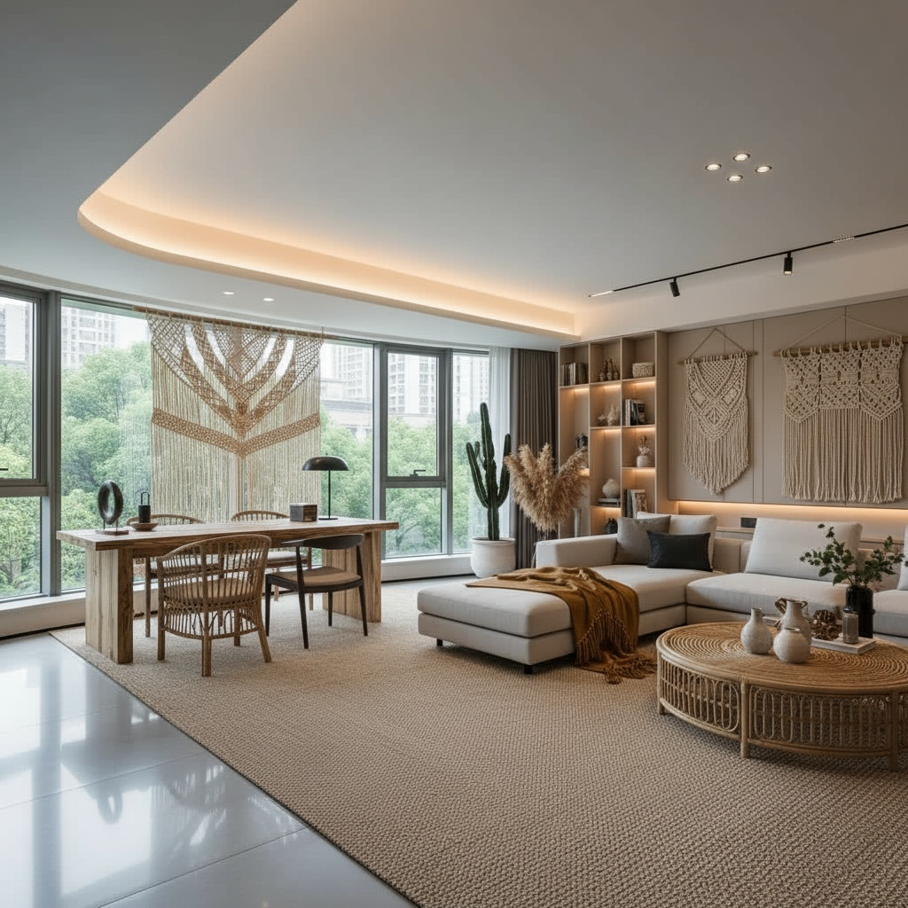 Eclectic, colorful, and free-spirited. Boho design mixes patterns, textures, and global influences—ideal for creative souls who love curated chaos with meaning.