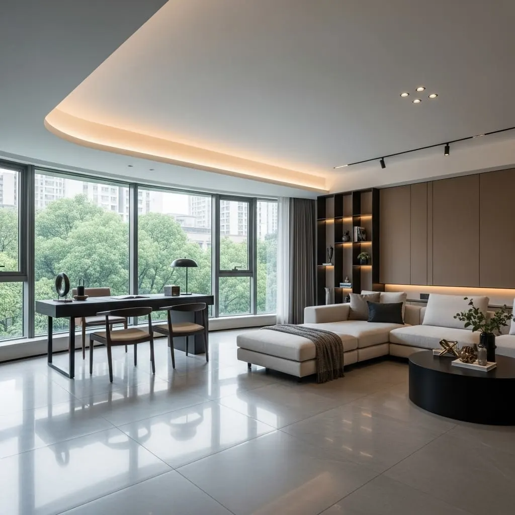 Sleek surfaces, metallic finishes, and cutting-edge design. This style celebrates innovation—ideal for tech-forward spaces and avant-garde thinkers.