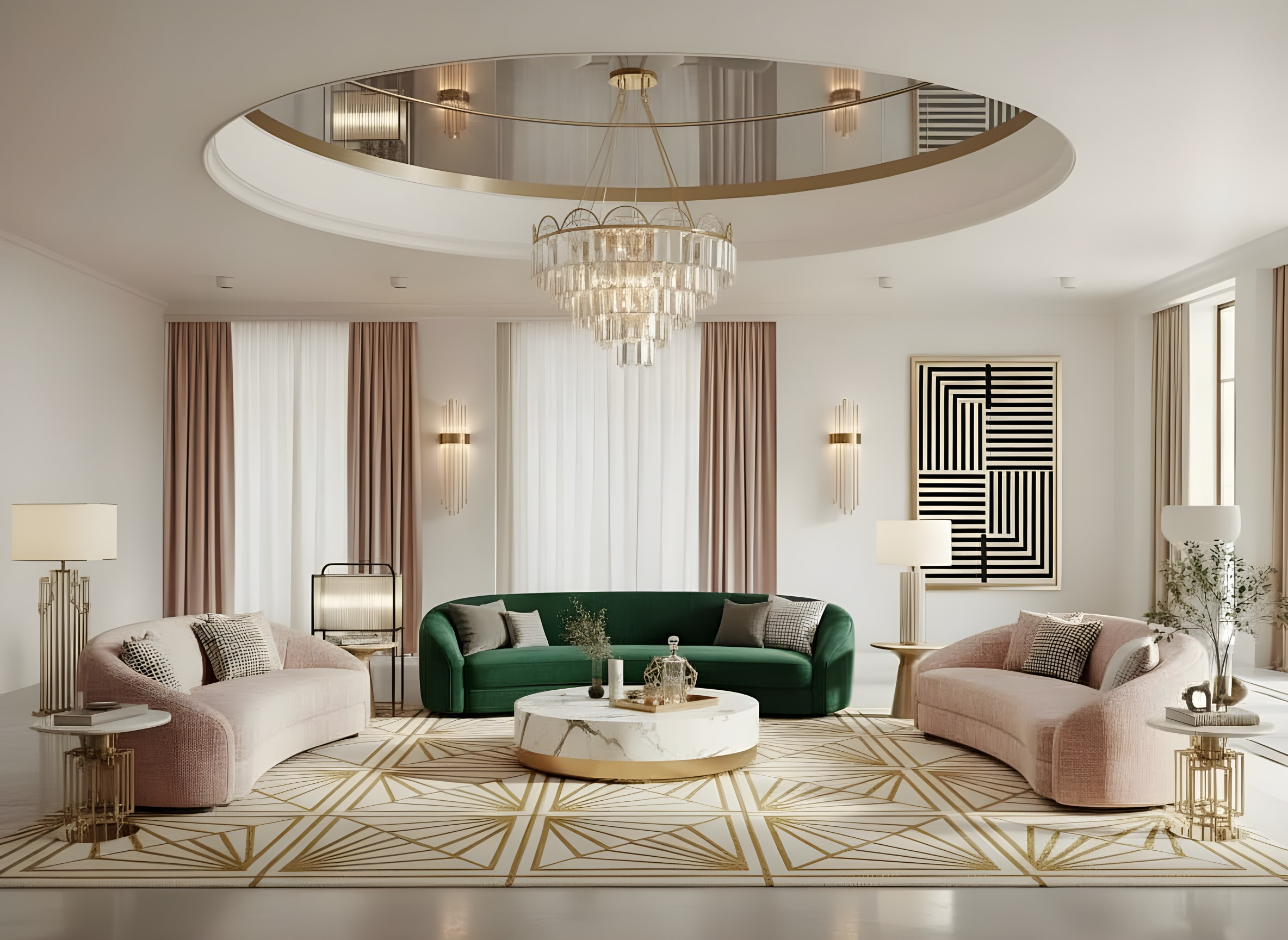 Glamorous and geometric. With gold accents, bold patterns, and rich color palettes, Art Deco interiors exude luxury and sophistication.