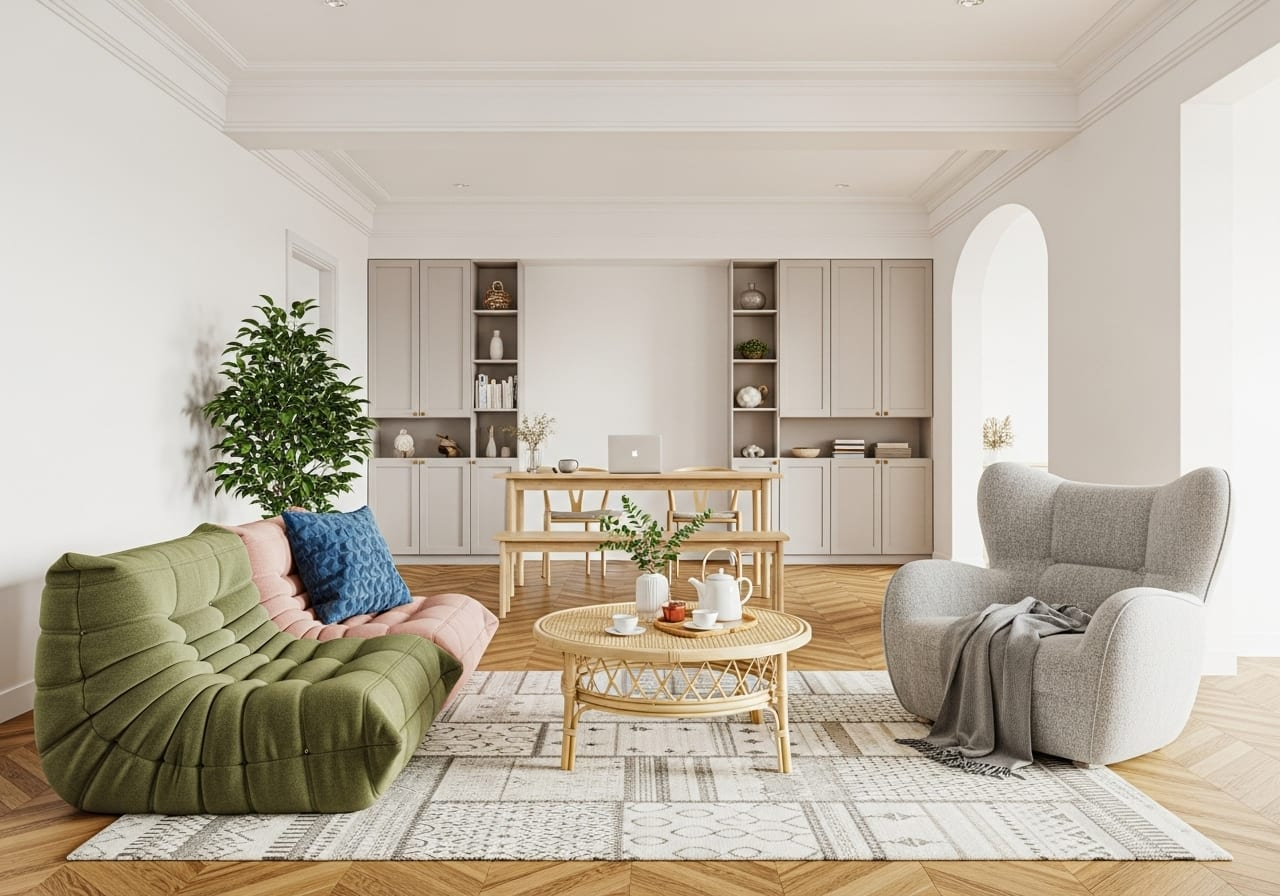 A fusion of Japanese simplicity and Scandinavian warmth. Japandi emphasizes balance, craftsmanship, and mindfulness, resulting in calm, harmonious spaces.